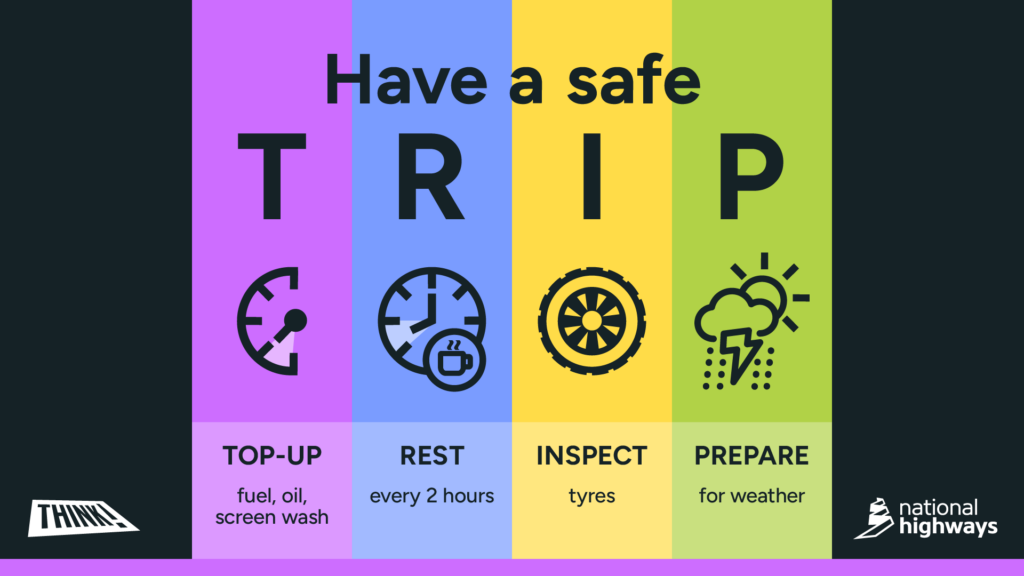 The T.R.I.P.S. checklist from National Highways can really help keep last-minute chaos, expensive breakdowns and road trip tears a thing of the past. Taking time before your journey can save hours of hassle and significant costs if your vehicle breaks down.